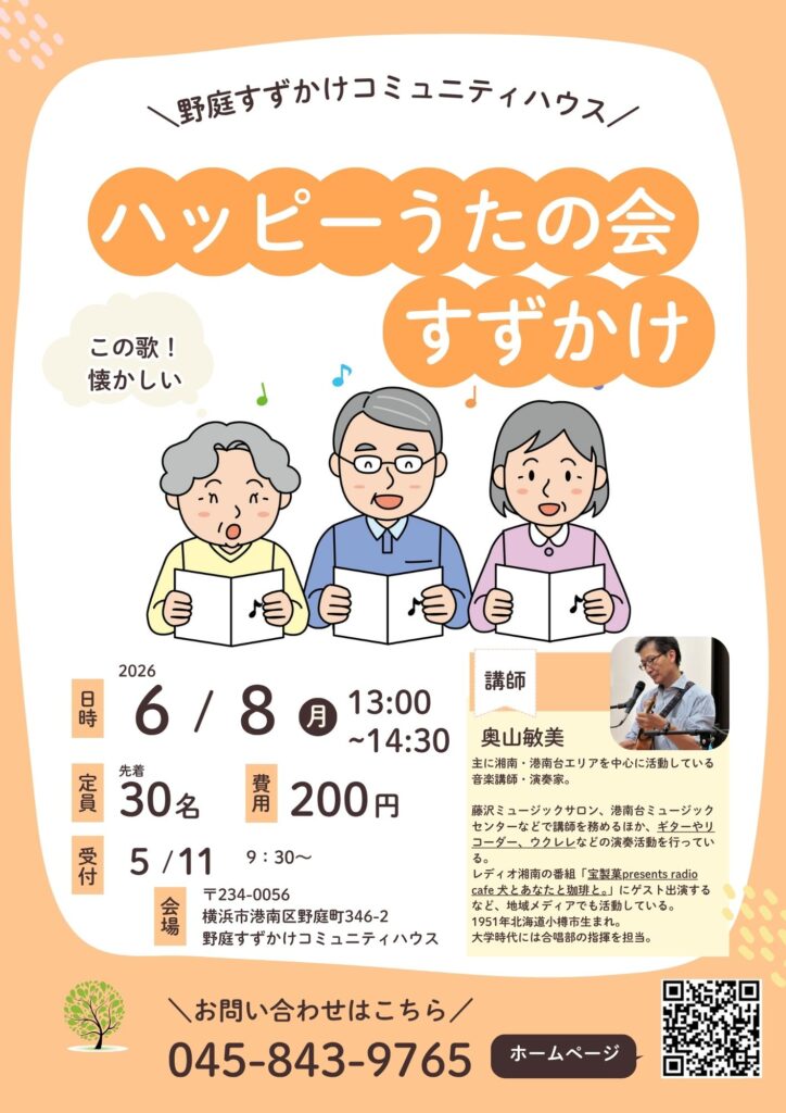 いつも野庭すずかけコミュニティハウスをご利用いただきありがとうございます。
