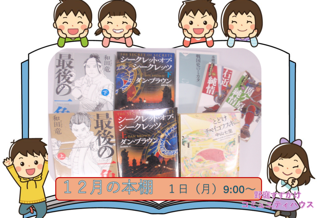 ★野庭すずかけコミュニティハウス図書室の蔵書の検索ができます。